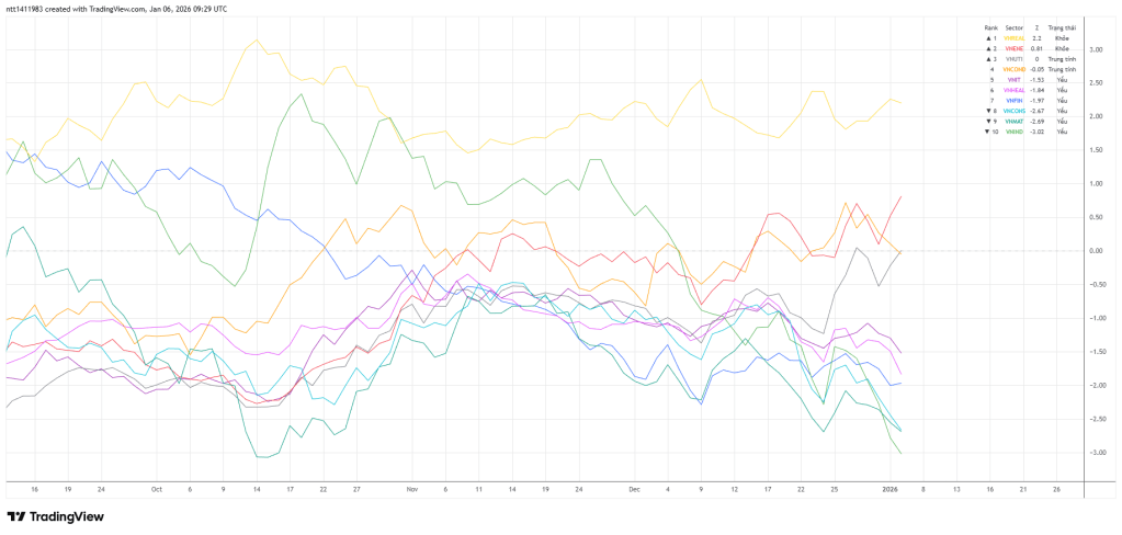 Sức mạnh ngành, dẫn đầu bởi nhóm VnReal và VnEnergy.